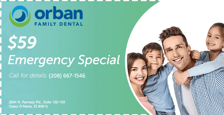 Our dentists and team provide special offers on our dental services in Coeur d’Alene, Idaho, to help you receive the quality care you need. We invite you to call Orban Family Dental today at 208-667-1546 to learn more about our special offers and to schedule an appointment with Dr. Filip Orban, Dr. Cameron Turner or Dr. Andrew Hoover. We look forward to helping you care for your smile!